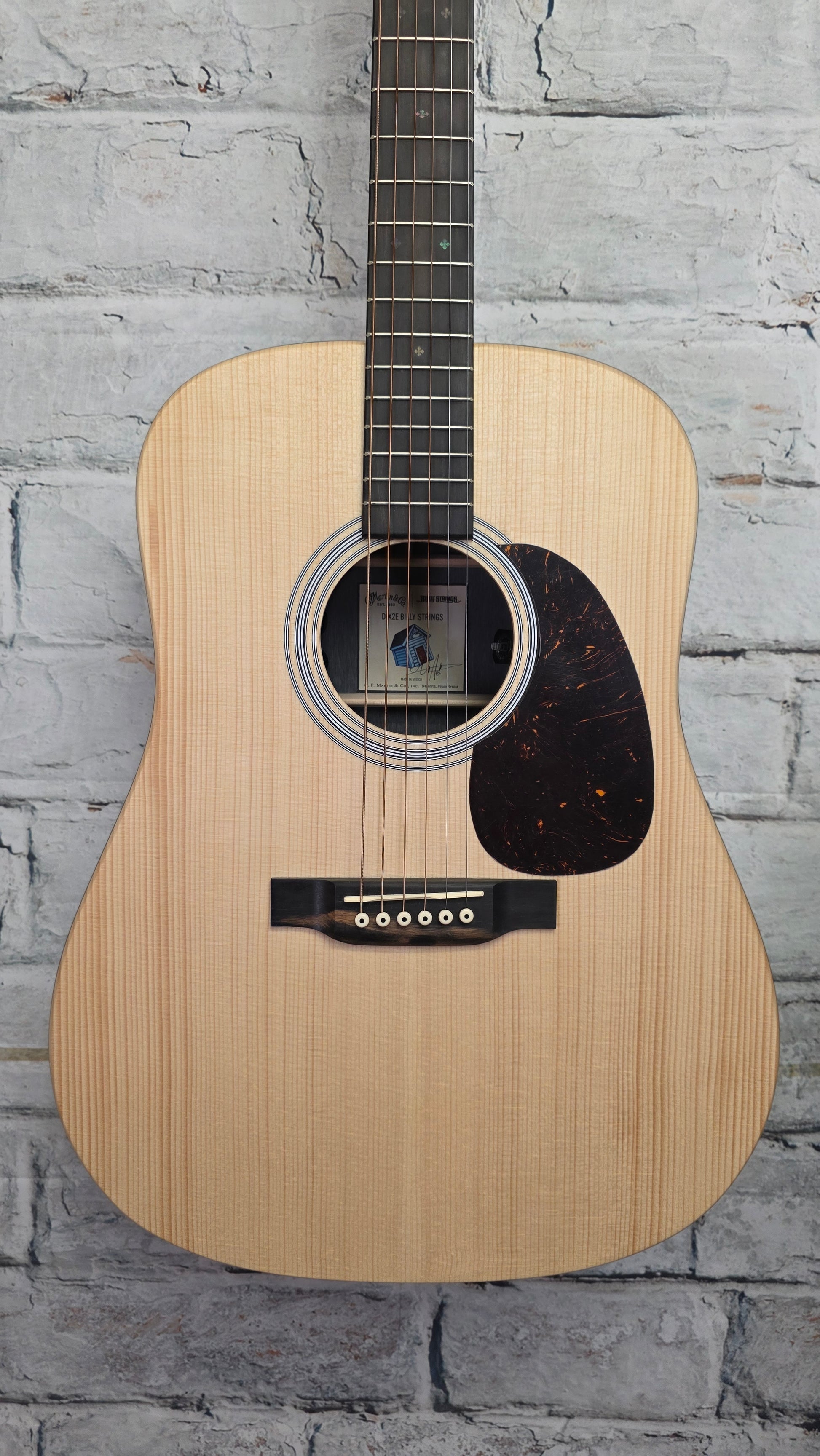 The Martin D-X2E Billy Strings brings all the charm of Billy’s signature D-28 to a supremely gig-friendly platform packed with performance-friendly features and top-class Martin E1 electronics. Just like Billy’s top-of-the-line D-28, this acoustic-electric guitar sports a non-standard 25-inch scale length for a slinkier feel and easier bends. Whether you’re dishing out Billy-style bluegrass licks or you’re strumming along to support the singer, the D-X2E’s solid spruce top, Brazilian-rosewood-patterned HPL rosewood back and sides, and scalloped bracing dish out all the low-end depth and unplugged projection that's made Martin’s big-bodied dreadnoughts among the most revered instruments on the planet. What’s more, the D-X2E Billy Strings’ select hardwood Modified Low Oval neck, 1.72-inch nut width, and slick satin finish ensure effortless navigation of the ebony fingerboard. You also get rock-solid nickel open-gear tuning machines, a traditional ebony bridge, and an eye-catching Style 28 rosette. Armed with a plethora of road-ready appointments, the Martin D-X2E Billy Strings is ready to rock the stage, the bluegrass circle, or the at-home acoustic jam session with equal attitude.